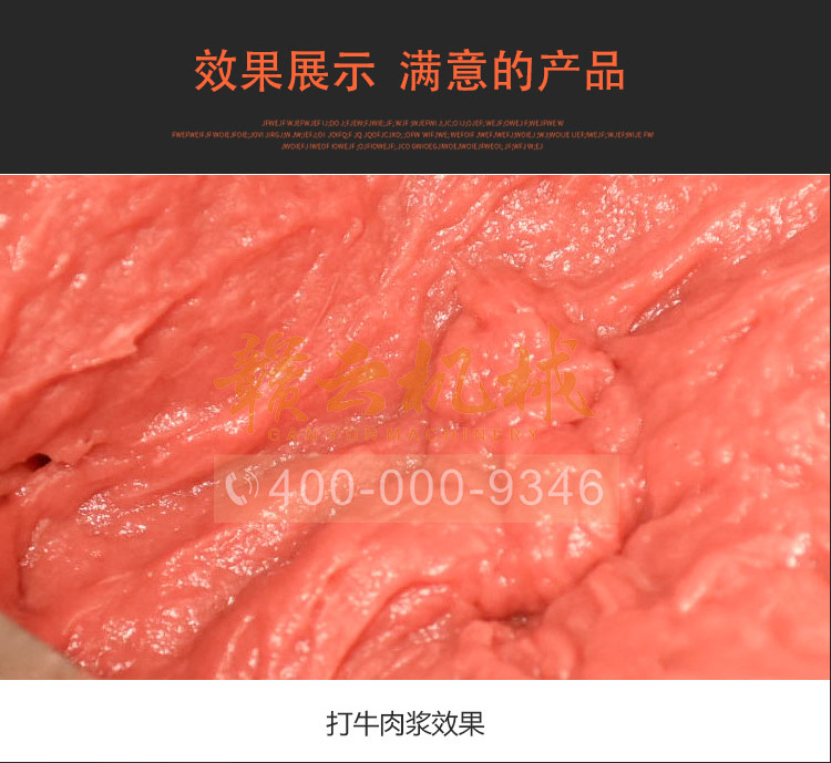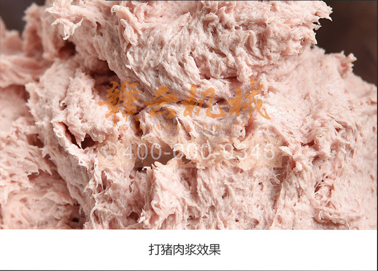 所產(chǎn)肉漿比高速類打的肉漿富有口感,不同普遍效果,工作穩(wěn)定,產(chǎn)量高質(zhì)量好,升溫低,其工作原理調(diào)速使用先慢揉將肉抱團(tuán)拉絲,慢慢加工成泥漿后無(wú)級(jí)變速拍打,使肉類纖維中發(fā)貨最大的吸水量和重組織性強(qiáng),所產(chǎn)肉丸制品等松脆有彈性,能漂浮于水面,蒸煮不裂開(kāi),火鍋上佳。