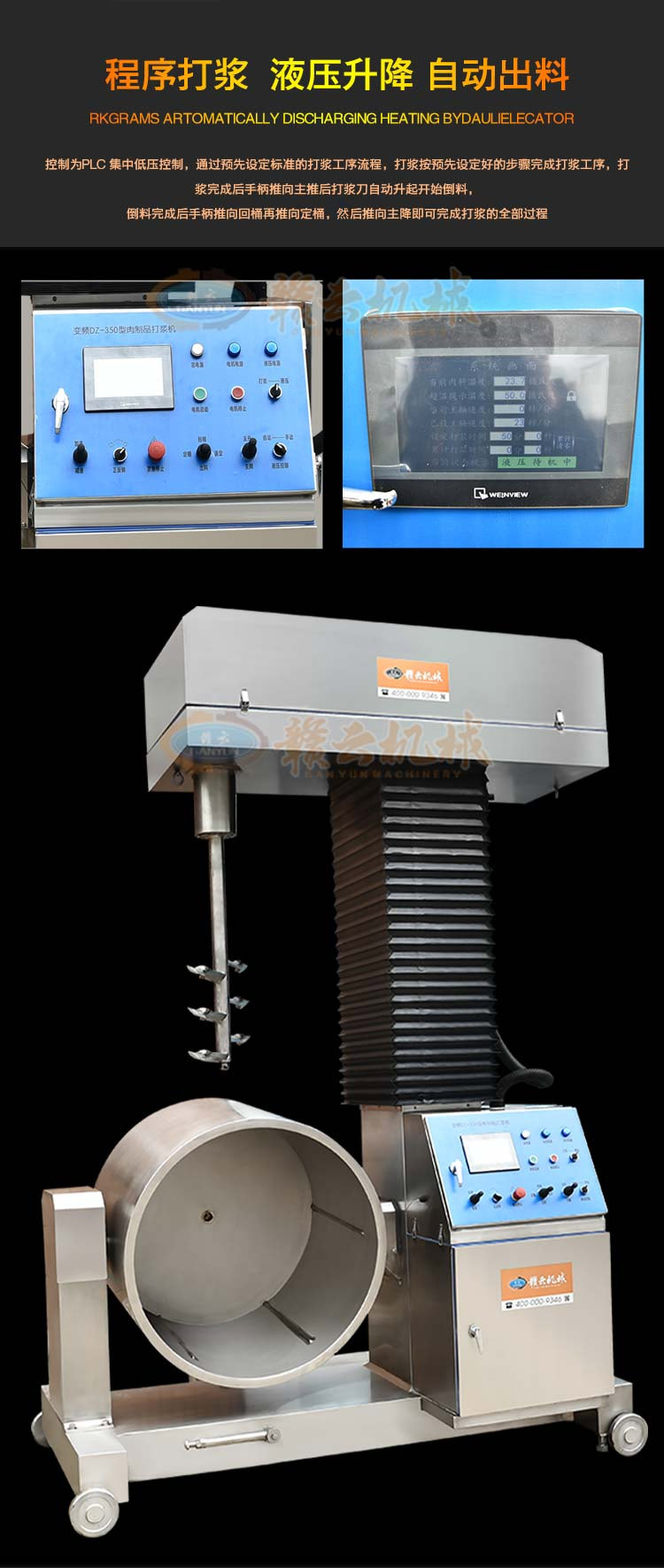變頻調(diào)速液壓打漿機(jī)是肉丸、貢丸、魚丸、臺(tái)灣烤腸等多種肉制品(特別為中高檔產(chǎn)品)的主要打漿設(shè)備,其產(chǎn)品的口感效果、組織結(jié)構(gòu)、成本控制等技術(shù)環(huán)節(jié)均在于打漿機(jī)的選用,在打漿升降過(guò)程中穩(wěn)定性好,打漿速度快,機(jī)座穩(wěn)固可靠。