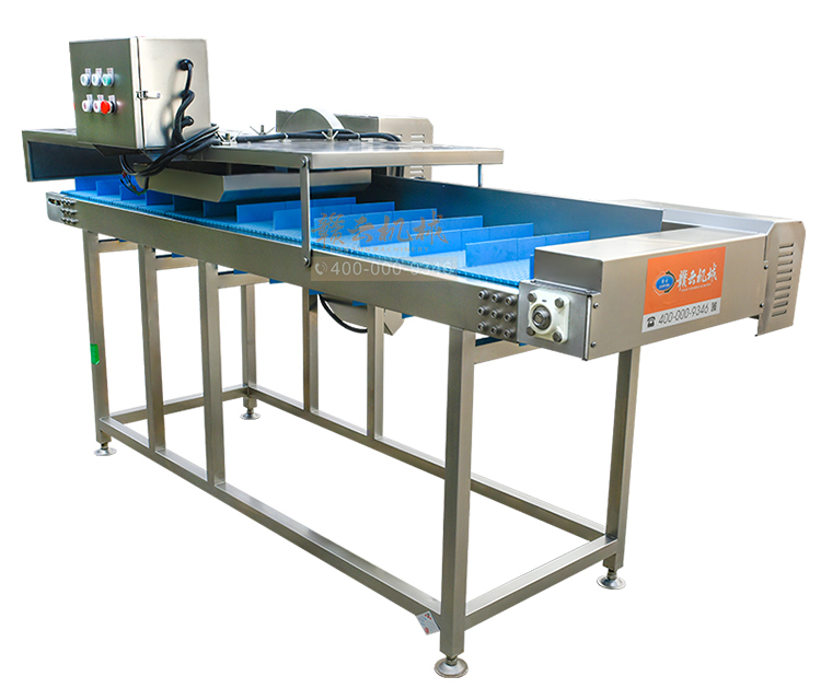 平行輸送去根機由輸送板帶動物料前行,蔬菜經(jīng)過固定位置的刀盤后,蔬菜根部被切割從廢料口出來,保留的蔬菜則向前輸送。切割的長度可以調(diào)節(jié),每顆蔬菜所切割出來的廢料都相等。去根機適合大型食品加工廠、凈菜生產(chǎn)線等。
