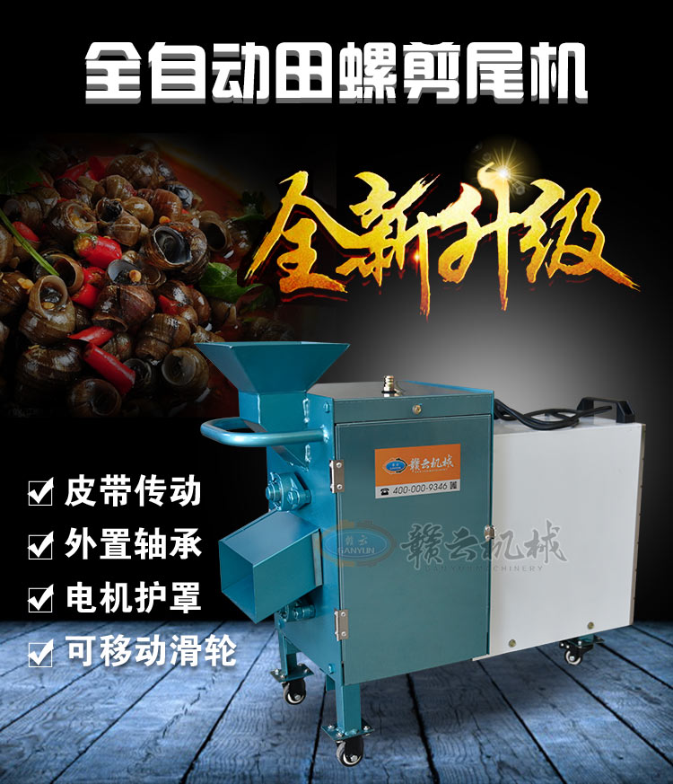 田螺剪尾機(jī)原理適用于菜場、飯店加工螺螄,減少人力。只需將螺螄倒入進(jìn)料口,啟動電源運(yùn)轉(zhuǎn)5分鐘,剪完后往進(jìn)口沖1-2次水,停機(jī)拉開閘門即可