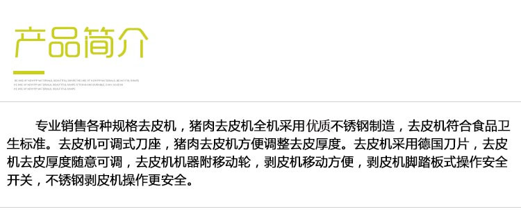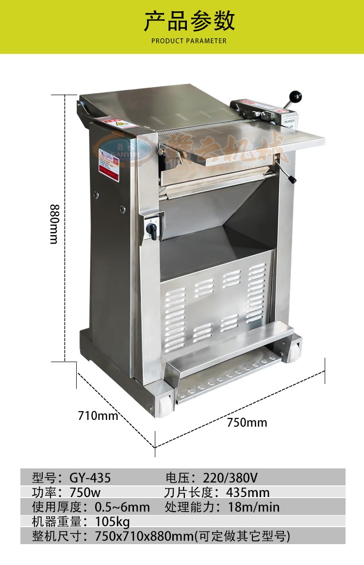 豬肉扒皮機(jī),扒皮用什么好,扒皮機(jī)那個(gè)牌子的好豬肉去皮機(jī)扒皮機(jī)采用不銹鋼制造,去皮機(jī)符合食品衛(wèi)生標(biāo)準(zhǔn)。去皮機(jī)可調(diào)式刀座,豬肉去皮機(jī)方便調(diào)整去皮厚度。去皮機(jī)采用優(yōu)質(zhì)刀片,去皮皮厚可調(diào)節(jié),去皮機(jī)附移動(dòng)輪,移動(dòng)方便。扒皮機(jī)腳踏板式操作安全開關(guān),操作安全。