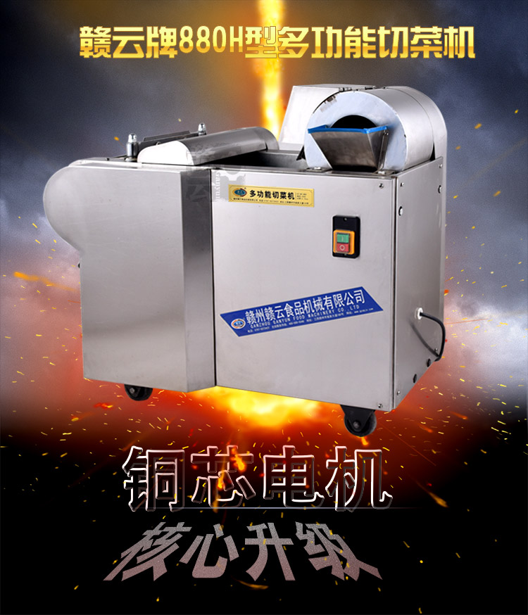 2015年新款加厚型切菜機是我廠經(jīng)過多年的切菜實踐經(jīng)驗和客戶反饋等綜合信息考慮設計而成的,比原來的880型切菜機加厚板材,并配用全銅芯超穩(wěn)定型電機。保證產(chǎn)品質(zhì)量的同時,使得產(chǎn)品外形更加美觀,更顯不銹鋼檔次。一小時可切600公斤蔬菜,切菜厚薄可調(diào)0-20mm,切片厚薄可調(diào)0-10mm,模擬手工切菜原理設計而成,采用輸送帶完美配合離心切片機構和豎刀切菜機構,運用手壓原理將切切成有規(guī)則的,間隙均勻的片、丁、絲、條等狀。