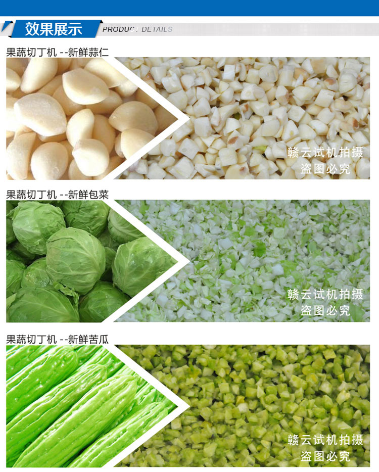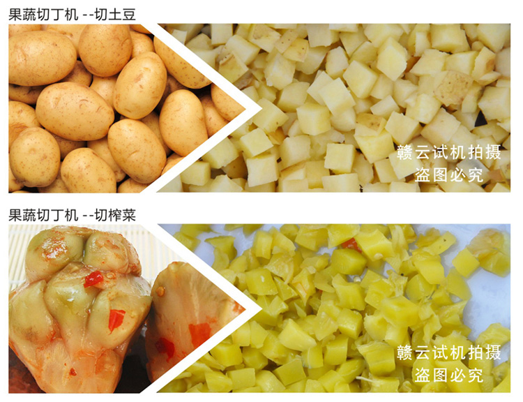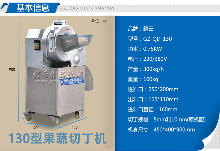 130型果蔬切丁機(jī)采用不銹鋼材質(zhì)和鋁合金設(shè)計(jì)而成,利用物料的離心作用力作用于切片刀、切絲刀和切丁刀上,可一次切出規(guī)則的丁狀物,亦可將切絲刀和切丁刀拆卸下來(lái),切片和切條。適用范圍廣,適用于食堂,食品加工廠等切片切絲切丁之用,以節(jié)約人工成本,提升產(chǎn)能。