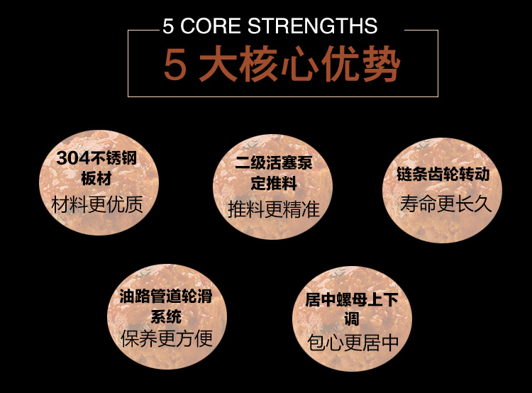 成型模具:28mm、30mm、32mm三種規(guī)格,其他規(guī)格可定做。本機(jī)可生產(chǎn)直徑為28mm-36mm直徑的包心丸子,因此定做的規(guī)格直徑不能超過36mm,也不能低于28mm.