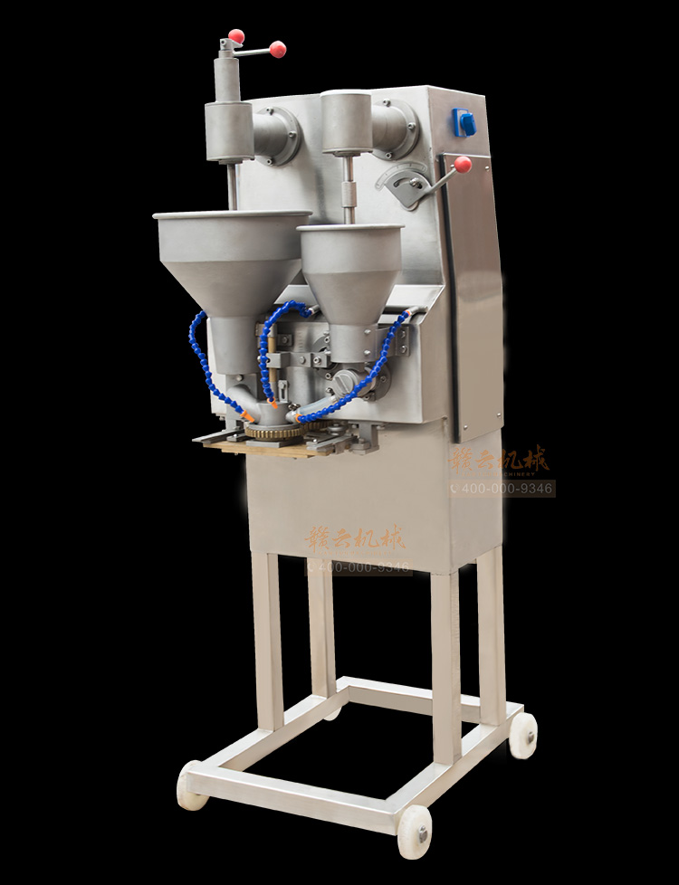 第三代包心肉丸機(jī)是在贛云二代包心肉丸機(jī)的基礎(chǔ)上,對(duì)二代包心機(jī)的成型切割部位進(jìn)行優(yōu)化提速處理,達(dá)到每分鐘200粒的成型速度是二代包心機(jī)的兩倍,且推料控制方式還是選用一級(jí)絞龍推料和二次泵定量輸送相結(jié)合的原理,餡料控制改塑料螺蓋為不銹鋼抗氧化特殊處理螺蓋,餡斗新增絞龍擋板,可有效防止肉餡余留餡斗,更易肉餡的向下擠壓輸送作用,成型旋轉(zhuǎn)齒輪上新增潤(rùn)滑滴管,彌補(bǔ)了二代包心機(jī)成型區(qū)域局部潤(rùn)滑切刀的缺陷,做出的包心包餡丸表皮光滑,個(gè)體圓且大,成型速度快,無小尾巴等優(yōu)勢(shì)。綜上優(yōu)勢(shì)pk二代和目前其他廠家新款式包心肉丸機(jī),故稱之為贛云第三代包心肉丸機(jī)!