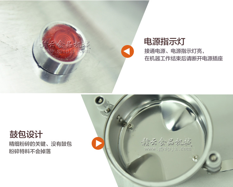 贛云系列中藥五谷粉碎機又稱打粉機,采用超高速純銅電動機帶動粉碎刀快速將物料打成粉碎狀,固又稱之為高速粉碎機,打粉機,我廠生產(chǎn)的多功能粉碎機可容納100克-2500克不等產(chǎn)品。這是一款1000克快速開蓋式粉碎機。