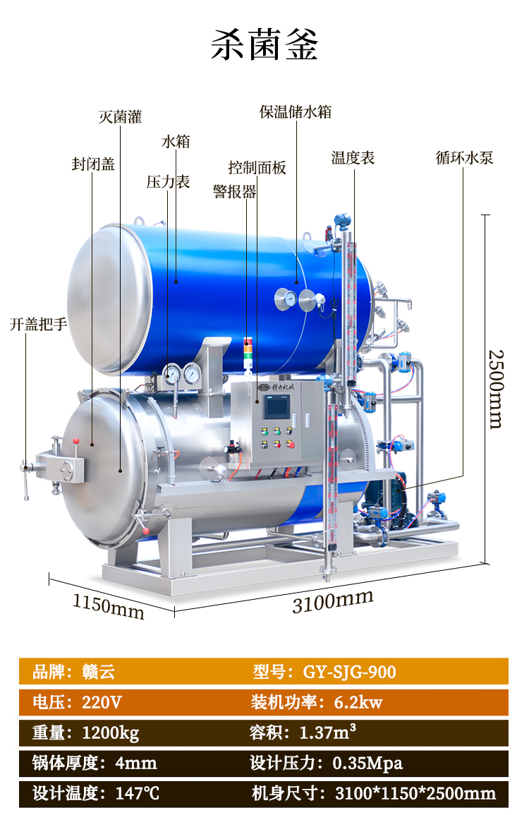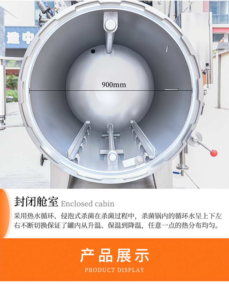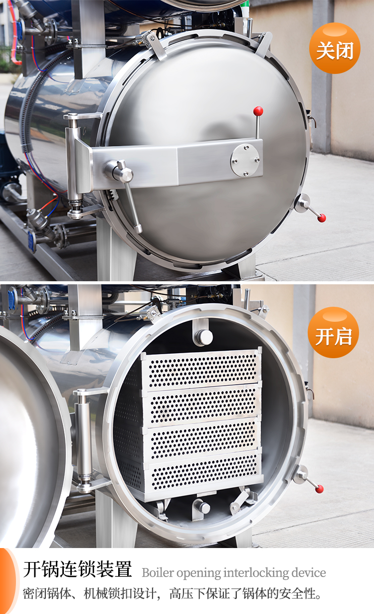 高溫殺菌鍋(殺菌釜)利用鍋內(nèi)轉(zhuǎn)換的熱水循環(huán),浸泡式高溫滅菌,在工作的過程當(dāng)中高溫殺菌鍋心對鍋內(nèi)的溫度壓力、殺菌時間、進汽、排汽、進水排水等過程,設(shè)備全部采用電腦自動化控制,使鍋內(nèi)所有區(qū)域溫差在0.3度左右,確保生產(chǎn)出來的產(chǎn)品的色澤、口味、營養(yǎng)成分不會改變,適用于罐頭(如:肉類、魚類、蛋類、蔬菜類、粽子等罐頭) 及需要高溫用殺菌的蛋白飲料(如:馬口鐵罐、玻璃瓶罐頭、蒸煮袋等):特別適合罐頭類(如:火腿腸、蒸煮袋裝雞、扒雞、純牛奶等)