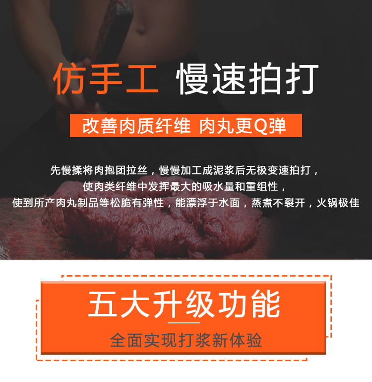 中大型魚丸打漿機采用全不銹鋼材質,有效的保護了電動機,操作上更安全,制作魚丸更衛(wèi)生,42型慢速肉丸打漿機可一次加工50斤左右魚漿,是中型魚丸,牛肉丸加工優(yōu)選慢速拍打設備之一,贛云歷經(jīng)十年品質,為您加工魚丸,牛肉丸等設備保駕護航。