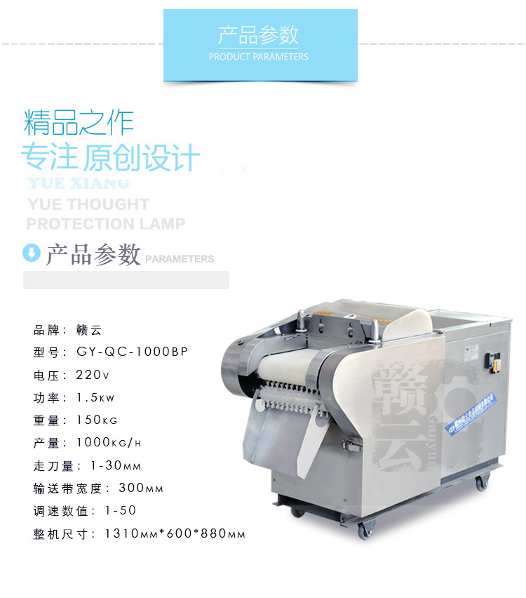 贛云續(xù)1000型切菜機的廣泛應(yīng)用的基礎(chǔ)上,新增了加高款、加厚款、變頻款等多種款式,以解決不同客戶的實際生產(chǎn)需求,體現(xiàn)贛云品牌價值。本款為變頻調(diào)速款,在原1000B型切菜機的基礎(chǔ)上增加變頻器控制調(diào)節(jié)電機速度以達到改變切菜速度的效果。