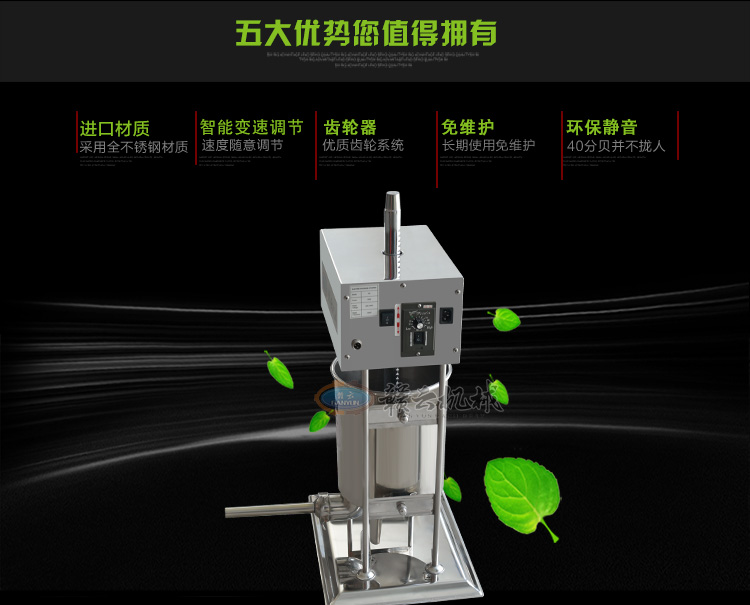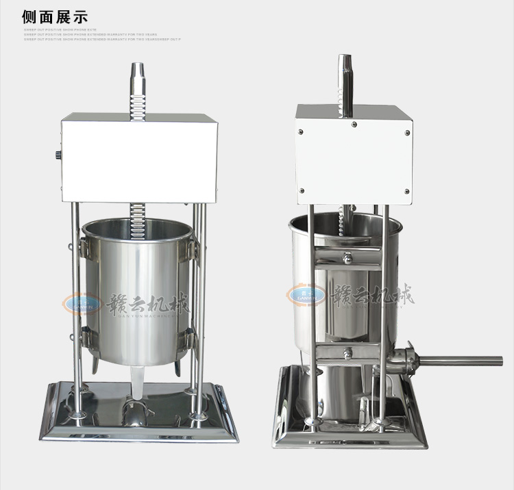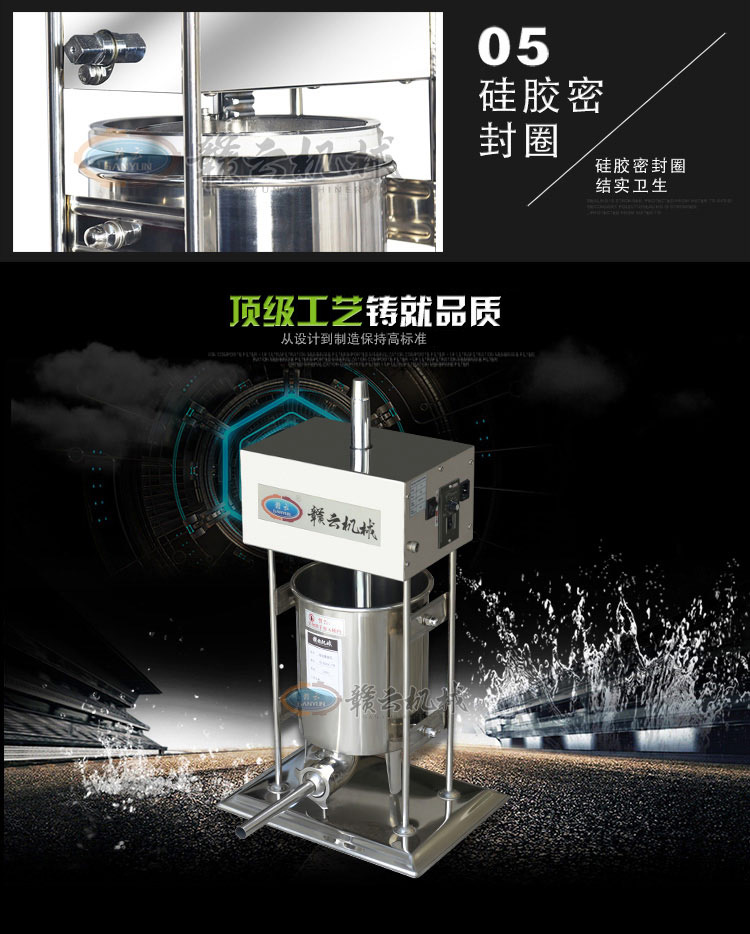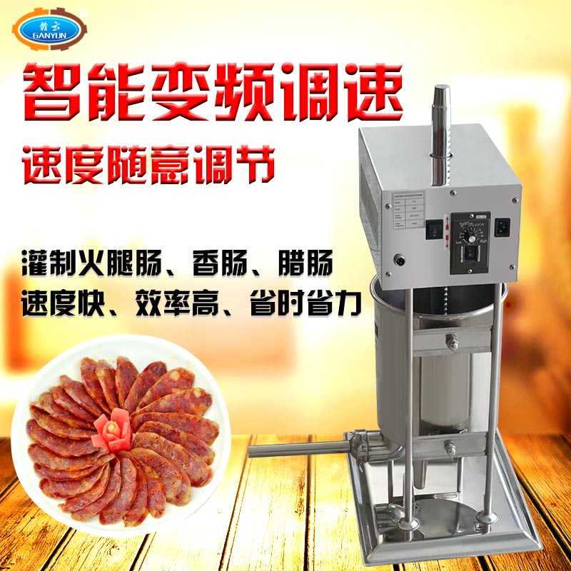 冬季灌腸新添專業(yè)灌腸設備,贛云牌立式不銹鋼電動灌腸機,專業(yè)灌制各種腸類,如臘腸、香腸、火腿腸、親親腸。變頻速度可調,灌腸讓你隨心所欲,整機采用全齒輪優(yōu)質拉桿升降系統設計.腳踏開關隨意控制,配合自動升降系統及變速可調,灌腸速度快,效果好。