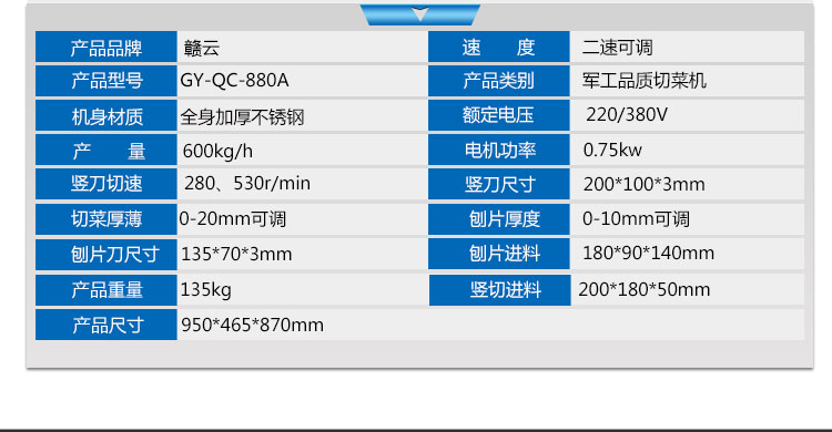 這款切菜機,擁有多功能切菜,螺母調厚薄,簡單方便,操作更人性化。880A型切菜機模擬手工切菜原理設計,在原來切菜機操作調試的基礎上加以改進,使調節(jié)更人性化,且整個加工工序均采用軍供品質標準,以求產品做的更精致,品質更好。