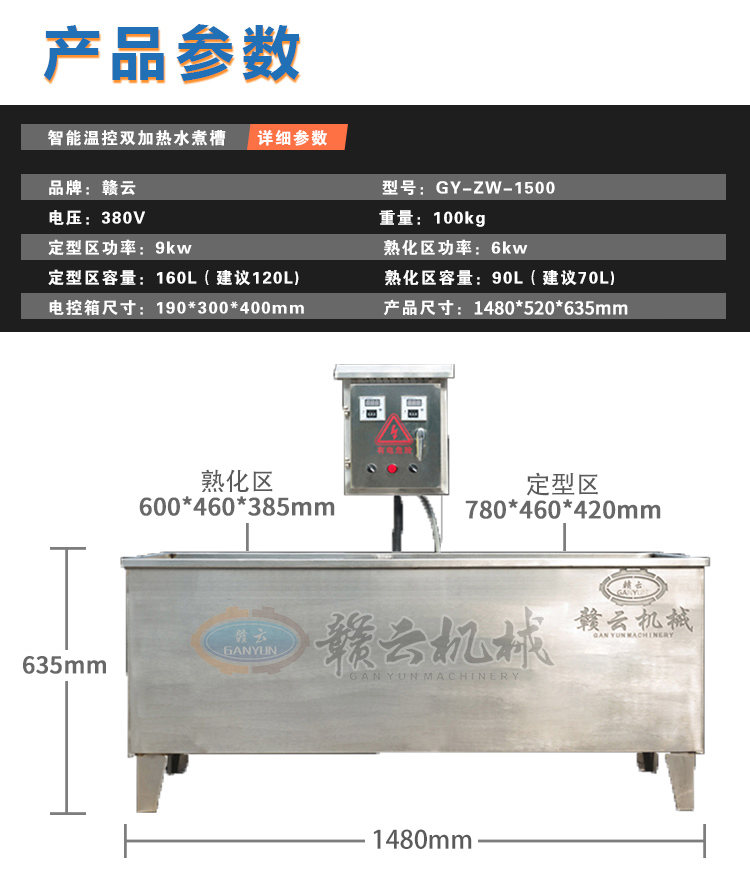 GY-ZW-1500型自動恒溫定型熟化水槽,也叫智能溫控雙加熱水槽,是我公司新設(shè)計開發(fā)的,一款適用于貢丸、包心肉丸、獅子頭、墨魚丸、實心肉丸、蔬菜丸子、米果丸子等定型熟化加熱用水槽。