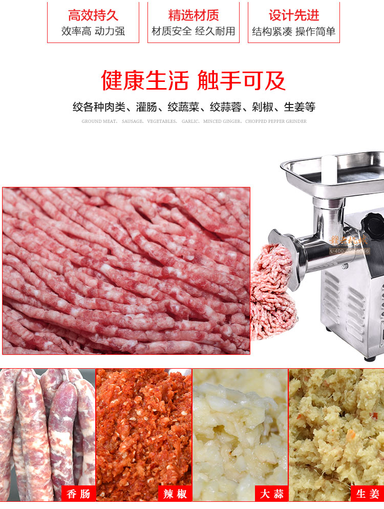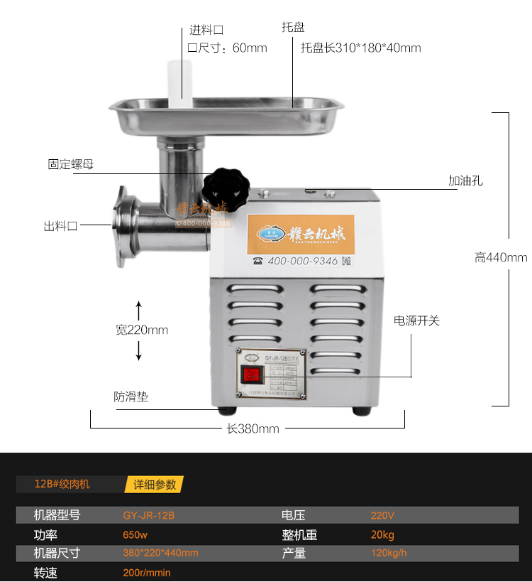 贛云臺式電動(dòng)12型絞肉機(jī),出新款了,簡介美觀的外形設(shè)計(jì),配備650w大功率純銅電機(jī),有效確保動(dòng)力充足,可絞各種肉類,干貨,鮮蔬等食品
