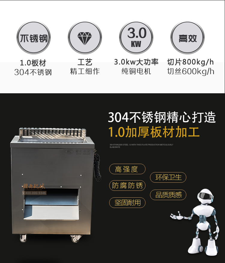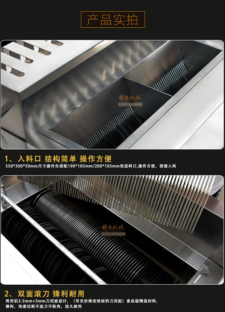 贛云2017款大型切肉機,工程款切肉片肉絲機,采用1.2mm304不銹鋼板材加工設(shè)計,配備3kw大功率純銅電機,380v工業(yè)用電,使得產(chǎn)品性能穩(wěn)定,雙滾切刀設(shè)計,切肉效率高,雙規(guī)格切肉刀具組合,適合大眾需求。