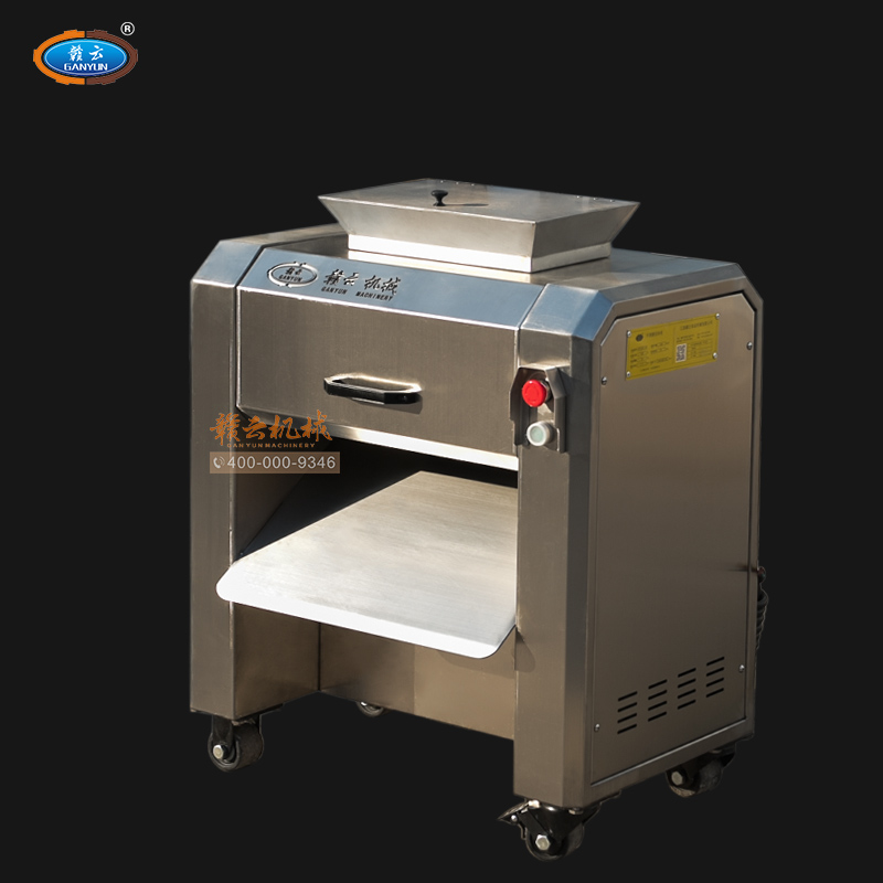 贛云304不銹鋼家禽商用切塊機,豬肉切條機,采用雙滾帶鋸齒切刀設(shè)計,針對整雞、鴨、兔等小型帶骨家禽具有很好的切割分解之用,速度快效率高,可切出長條形塊狀物,刀片采用特殊鋼材加工,鋒利堅固耐用,是中央廚房商用家禽分解設(shè)備。