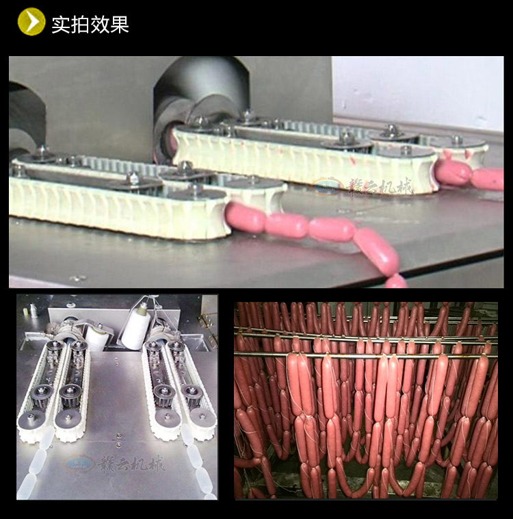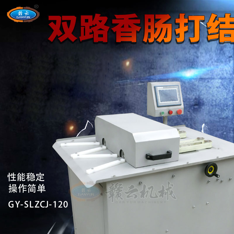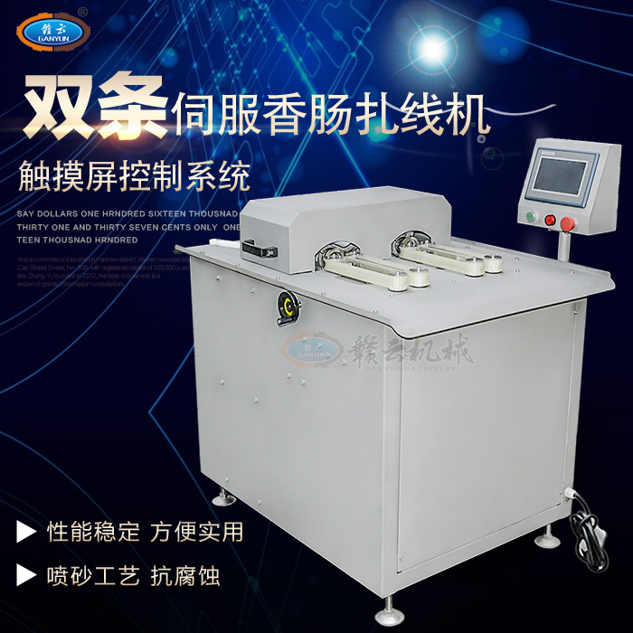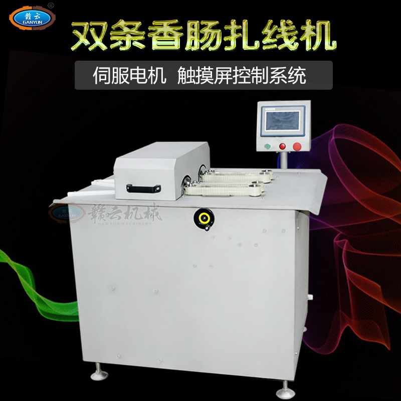 全自動動雙路高速香腸扎線機,自動分份,自動繞線,全程自動化控制。該機采用了優(yōu)質(zhì)電機和本公司自主研發(fā)的控制系統(tǒng),機身全不銹鋼制造、效率高、易操控、節(jié)約生產(chǎn)原料等優(yōu)點,產(chǎn)品長度的調(diào)節(jié)可以隨心所欲