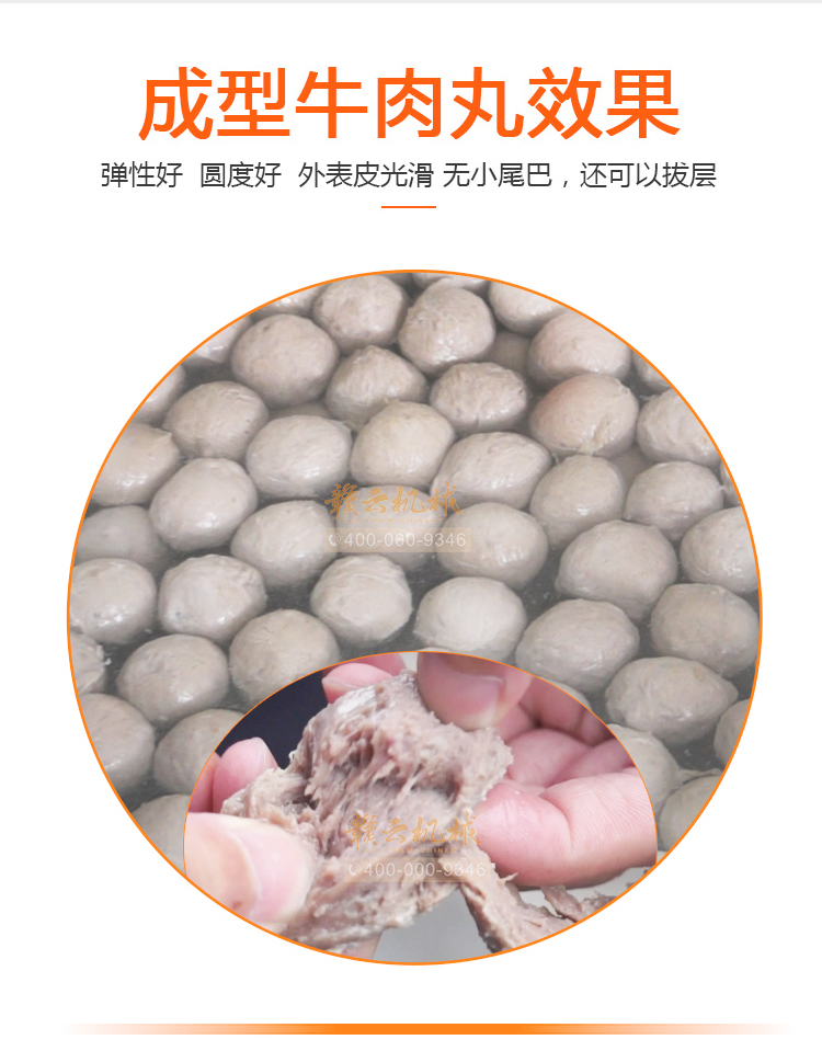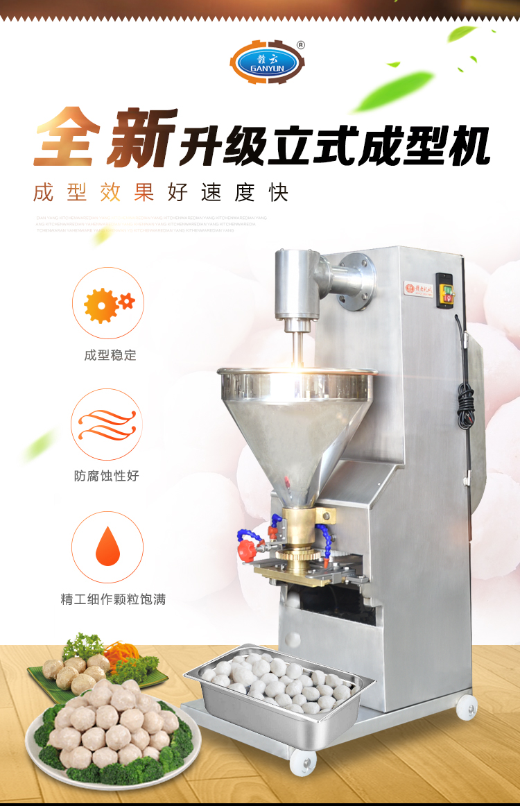 贛云牌肉丸成型機采用不銹鋼材料制造,機器價格實惠,做出的丸子種類多,比如:豬肉丸、牛肉丸、魚肉丸、蘿卜丸子、土豆丸子等等,做出來的肉丸可以水煮、油炸等成型,做出的丸子圓度適中、口感和手工無任何差別。但是效率確實人工的幾倍哦。