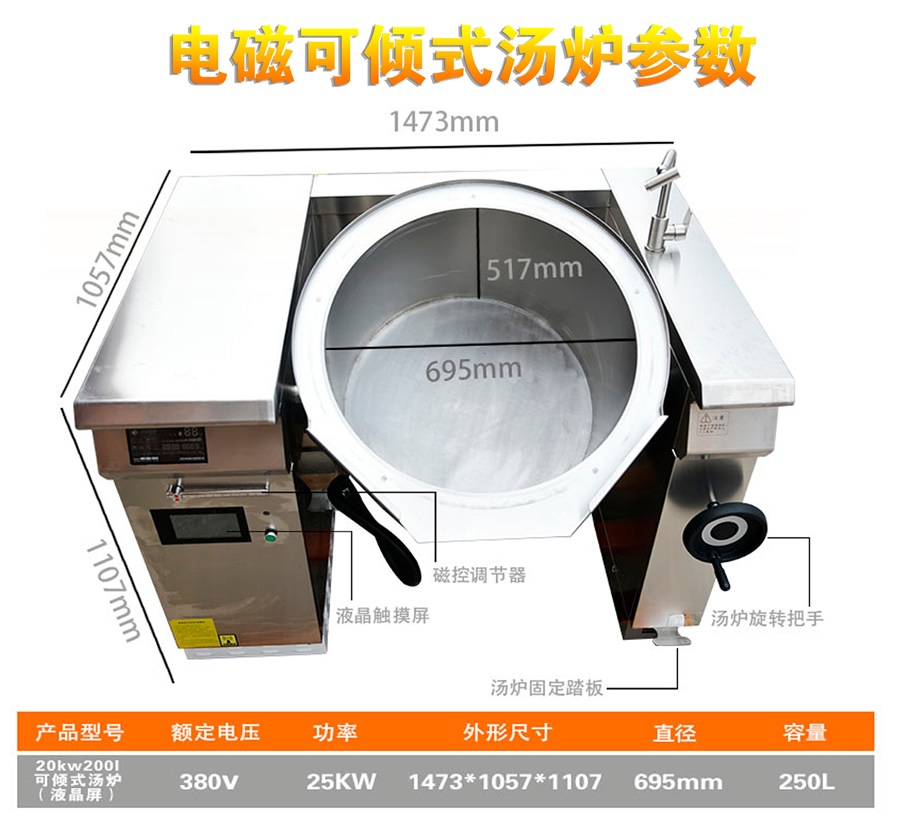 中央廚房設(shè)備->熱調(diào)理區(qū)設(shè)備->20KW200L可傾式湯爐(液晶屏) | |||||||||||||||||||||||||||||||||||