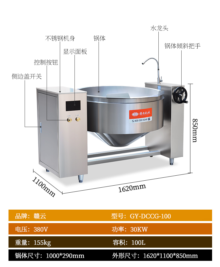 中央廚房設(shè)備->熱調(diào)理區(qū)設(shè)備->100L可傾斜式電磁炒鍋 | |||||||||||||||||||||||||||||||||||