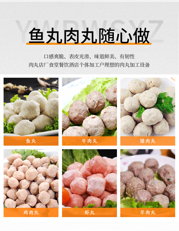 魚丸、豬肉丸、牛肉丸、雞肉丸、等多種肉丸輕松成型,搖擺不堆料。