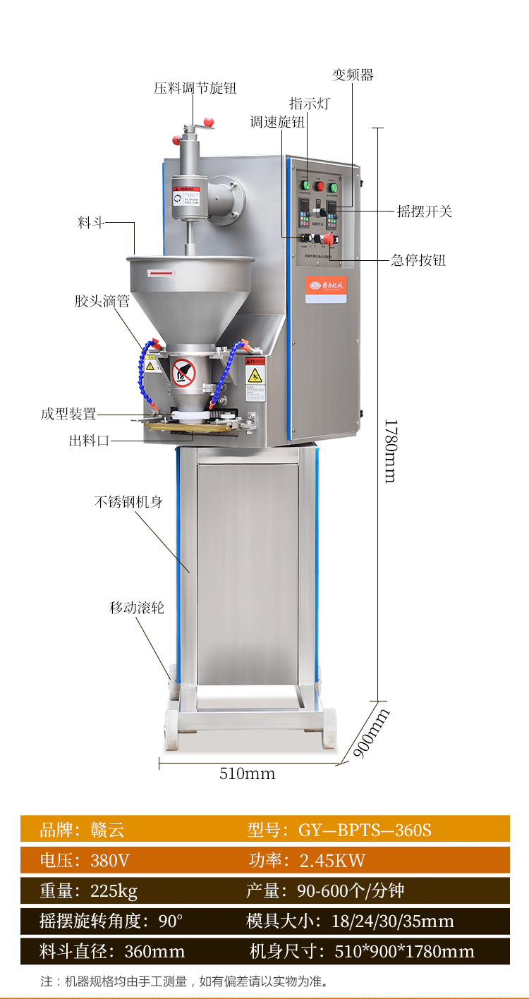 主頁-> 肉丸成型機械->實心肉丸機->雙速肉丸搖擺成型機