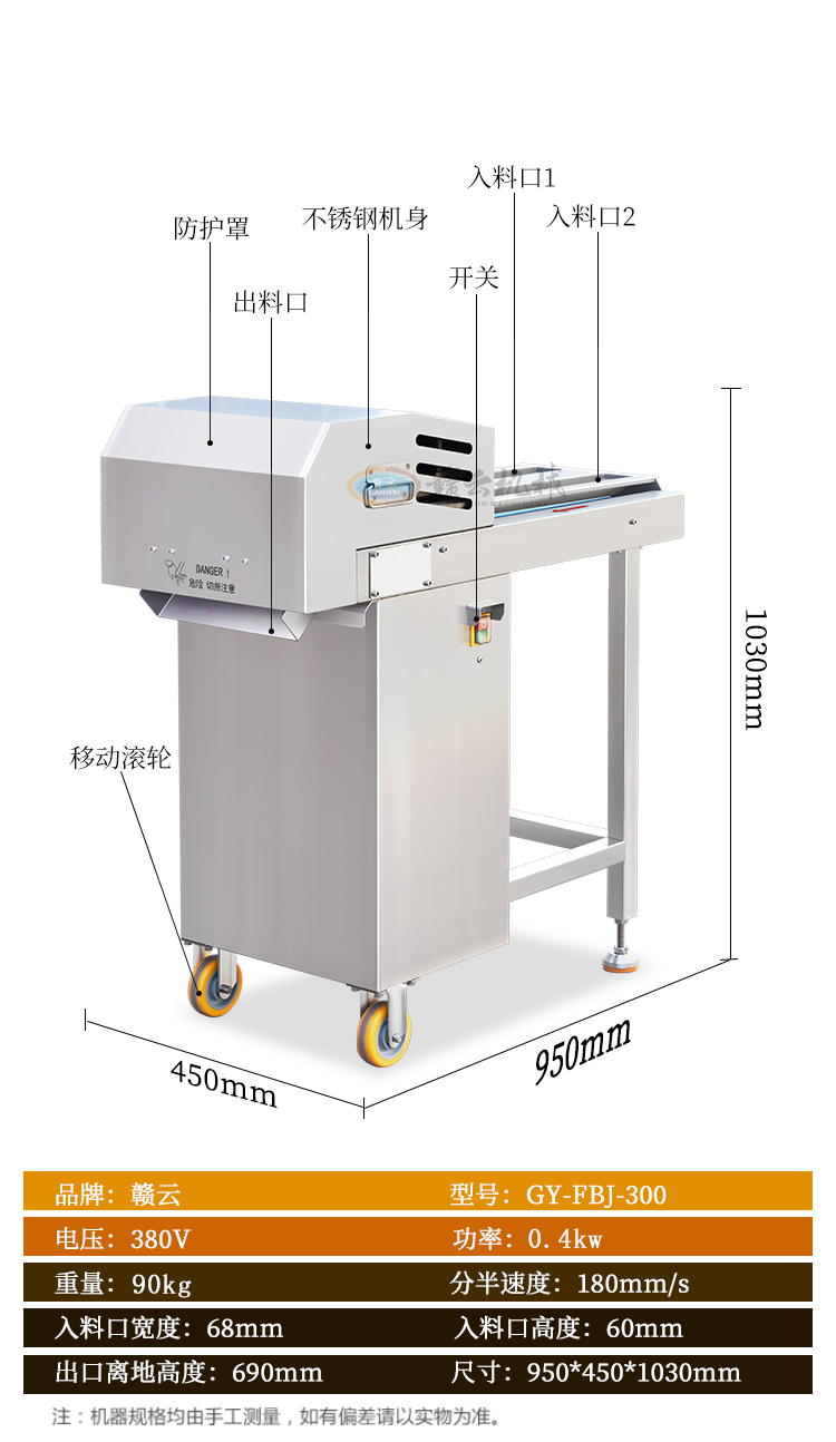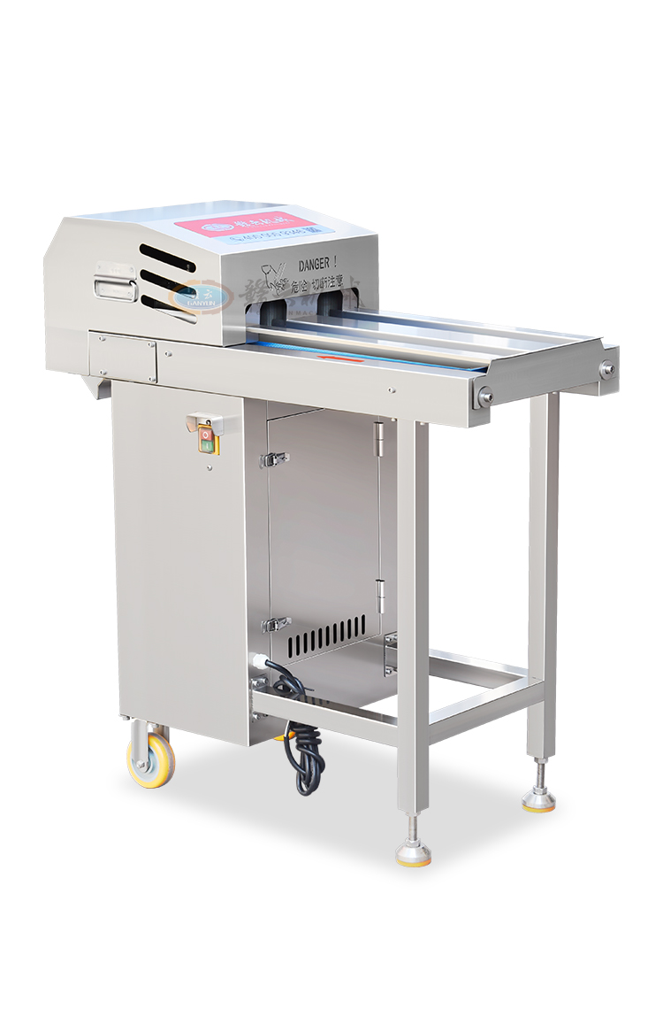 贛云雙路連續(xù)式分半機,機器采用不銹鋼材質(zhì),輸送帶雙通道設(shè)計,機器擁有自動定位物料對中夾持功能,防止物料跑偏,切出來的物料兩半均勻,效果好。 機器采用人性化設(shè)計,無論是入料和操作面板,無需要經(jīng)驗都能輕松駕馭。機器適用于雞爪、鴨頭、鵝頭、海參、魷魚頭、胡蘿卜、豬喉等對稱分半加工,切割效率高,分半均勻,切面平整效果好。需要了解鴨頭切兩半設(shè)備、連續(xù)式劈半鴨頭雞頭機、微凍鴨頭鹵鴨頭切半的機器、雞頭鵝頭切半機、連續(xù)雞爪子切半機機器、檸檬風(fēng)爪加工設(shè)備等,可以聯(lián)系贛云機械。