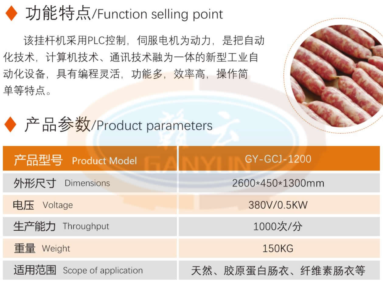 肉制品前處理->專用灌腸設(shè)備->1200自動香腸掛桿機 | |||||||||||||||||||||||||||||||||||