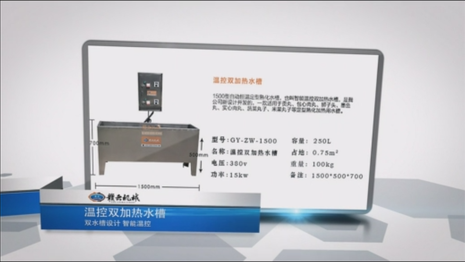 (5)成型的牛肉丸出口可以放置一臺(tái)油炸或水煮或蒸煮槽來實(shí)現(xiàn)牛肉丸的熟化,熟化槽可控制溫度也可根據(jù)產(chǎn)品定制不同大小的熟化槽。 觀看蒸煮槽視頻