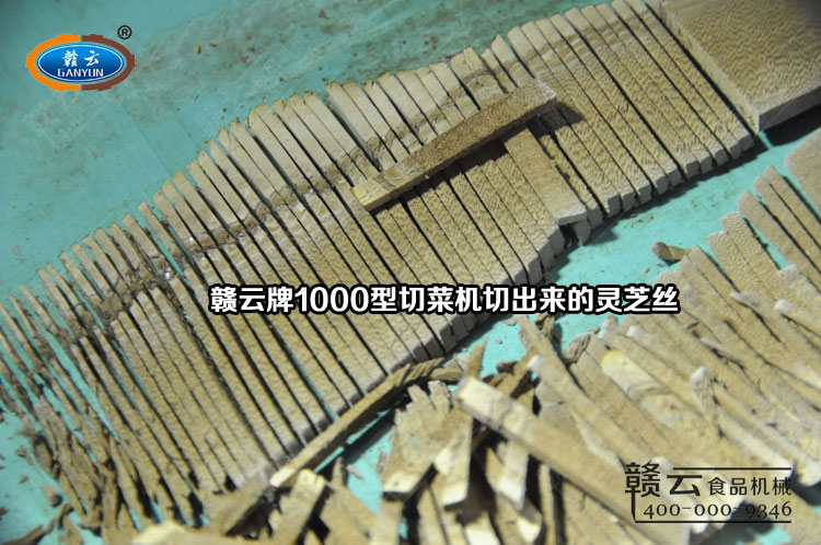 將靈芝片放入切菜機(jī)豎切入口內(nèi):即為輸送帶上