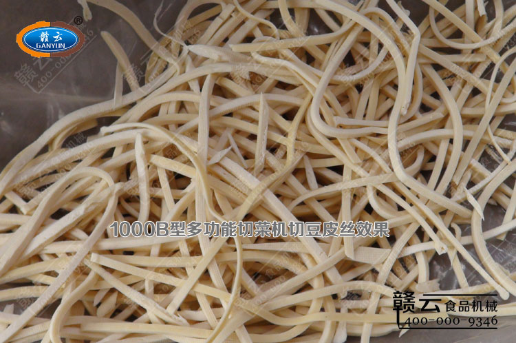 成品豆皮較長(zhǎng)較寬,手工切豆皮絲不僅麻煩,而且所切規(guī)格尺寸不均勻,1000B型切菜機(jī)切豆皮絲不但切絲厚薄均勻,而且加工效率是手工切絲的幾十倍,原來(lái)需要十幾員工人分配切絲的,現(xiàn)在一臺(tái)機(jī)器就解決了豆皮廠加工需求,大大提高了生產(chǎn)廠家的加工效率,同時(shí)解放了更多的勞動(dòng)力,降低了生產(chǎn)成本。