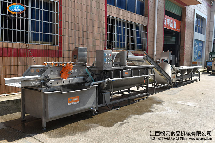 贛云中央廚房凈菜設(shè)備流水線操作演示,蔬菜凈菜加工自動化生產(chǎn)線,本套設(shè)備采用人工分選輸送設(shè)備、數(shù)字多元化切割設(shè)備、提升設(shè)備、渦流臭氧清洗設(shè)備及高頻振動過濾設(shè)備組合而成,模擬手工作業(yè)原理設(shè)計,蔬菜經(jīng)過人工挑選將所切物料放入輸送帶內(nèi),經(jīng)過切割清洗過濾后即可包裝或烹制,整個環(huán)節(jié)節(jié)省人力成本,時間成本和運營成本,利用臭氧發(fā)生器結(jié)合渦流清洗設(shè)備能有效降解農(nóng)藥殘留,清除肉、蛋中的抗生素、化學添加劑、激素等有害物質(zhì),殺滅海鮮中容易引起中毒的嗜鹽性菌等,以保證物料的鮮度。