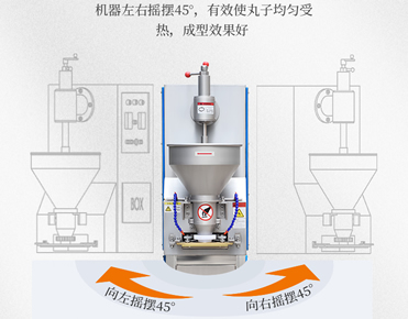 多功能性:左右搖擺肉丸機(jī)可以制作各種不同口味的肉丸,比如:魚丸、蝦肉丸、豬肉丸、牛肉丸、獅子頭肉丸、素丸等。同時(shí)它還可以通過更換切刀,成型不同大小的肉丸。