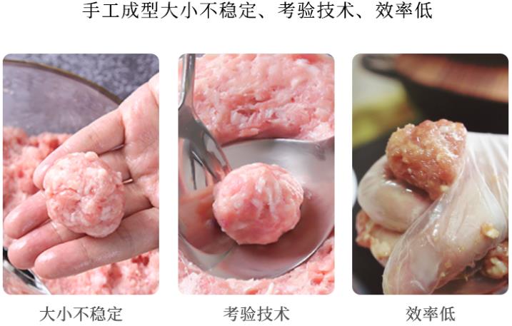 通過這種方法能夠保證肉丸的風味,但是其生產(chǎn)效率低下,而且不易保持一致的產(chǎn)品質(zhì)量。手工制作肉丸還容易受到操作人員技術(shù)水平的影響,導(dǎo)致產(chǎn)品規(guī)格不一。