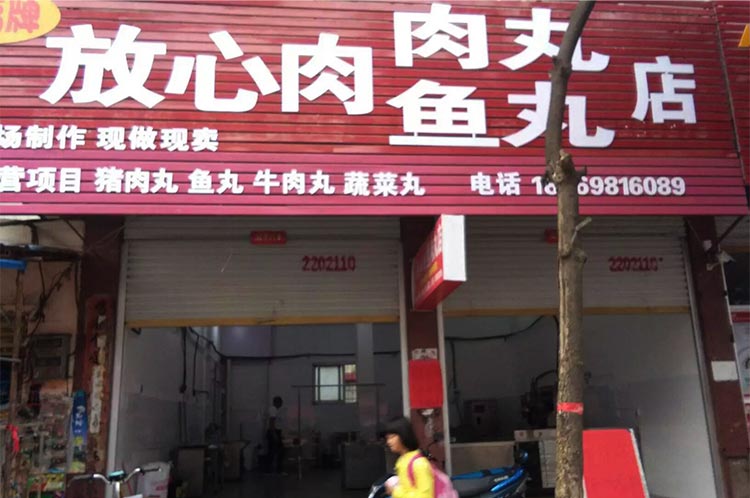 河南省信陽市羅山縣放心肉肉丸魚丸店,主營豬肉丸、魚丸、牛肉丸機(jī)蔬菜丸,秉承現(xiàn)場加工現(xiàn)做現(xiàn)賣,2016年10月2日達(dá)成設(shè)備采購,贛云全程策劃布局,工藝師上門傳授,并于2016年10月18日成功開張大吉。