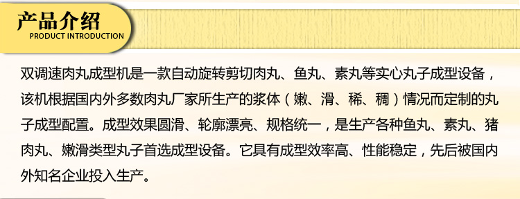 雙調(diào)速肉丸成型機(jī),這款肉類加工廠必備的設(shè)備,可以制作實(shí)心魚丸,素丸,肉丸等,是一款自動(dòng)旋轉(zhuǎn)剪切機(jī),制作出的肉丸可以銷往各地,這款肉丸成型機(jī)在食堂,飯店、工廠等,是必不可少的一款加工設(shè)備,深受客戶青睞,該機(jī)根據(jù)國內(nèi)外多數(shù)肉丸廠家所生產(chǎn)的漿體(嫩、滑、稀、稠)情況而定制的丸子成型配置。成型速度可調(diào)90-500粒每分鐘,成型效果圓滑、輪廓漂亮、規(guī)格統(tǒng)一,是生產(chǎn)各種魚丸、素丸、豬肉丸、嫩滑類型丸子首選成型設(shè)備。它具有成型效率高、性能穩(wěn)定,先后被國內(nèi)外知名企業(yè)投入生產(chǎn)。