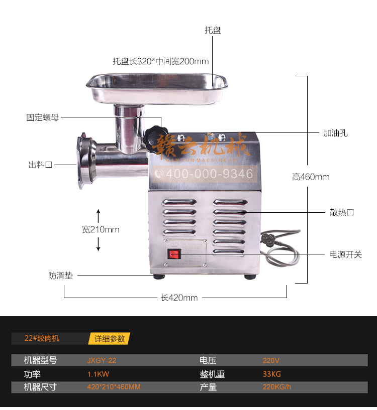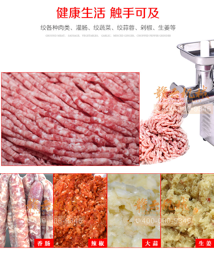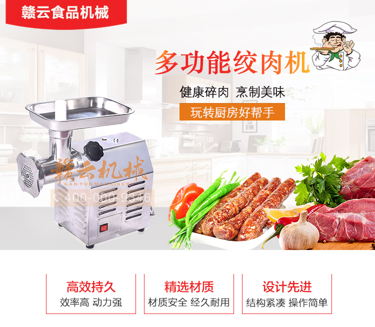 小型絞肉機適用于任何酒店、飯店、食堂、餐廳等。有不同規(guī)格的立式、臺式機型,省電省電,經(jīng)久耐用,方便快捷,電動絞肉機,外形美觀,效率高,功耗低。同時,價格低廠家直銷的價格,可靠的質(zhì)量,先進的高級不銹鋼,經(jīng)久耐用,可長時間使用,絞肉餡效果好,性能穩(wěn)定,采用進口的銅芯電機,人性化設(shè)計,安全可靠,不僅有設(shè)計安全的裝置,并且在絞肉的時候配有與任何肉類可以攪拌攪拌軸,無任何不安全因素,可以按照工藝要求切成顆;蛉饽,便于和其他輔料混合,鮮肉絞肉機器滿足不同肉制品的需要,小型絞肉機具有操作簡單,價格低,質(zhì)量好。贛云食品機械為您提供各自肉制品加工設(shè)備,歡迎您前來了解。