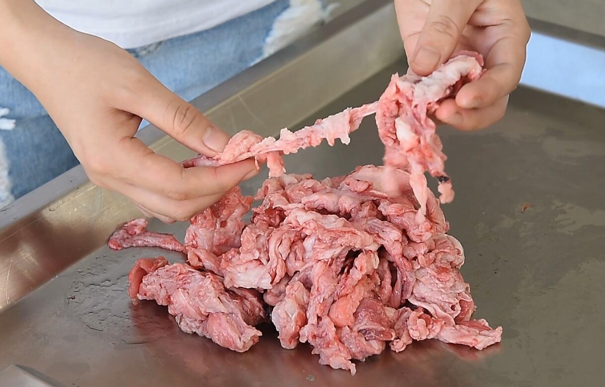 為了客戶可以更直觀的看到機(jī)器的效果以及測試機(jī)器的可靠性 本公司專門測試了旗下2款絞肉機(jī)的性能 我們分別測試了 牛肉 牛筋 和 豬油 牛油