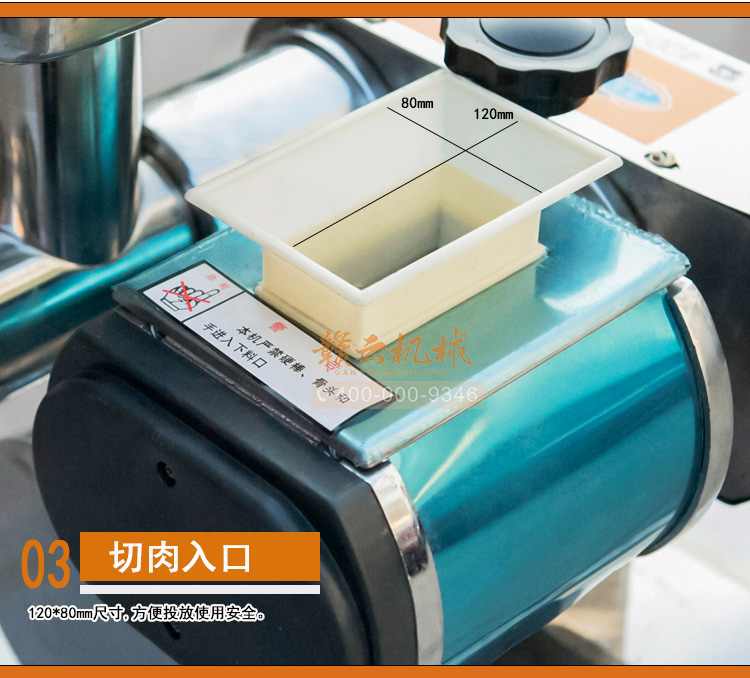 (5)添加肉塊一定要均勻,不能過多,以免影響電機(jī)損壞,如發(fā)現(xiàn)機(jī)器運(yùn)轉(zhuǎn)不正常,應(yīng)立即切斷電源,停機(jī)后檢查原因。
