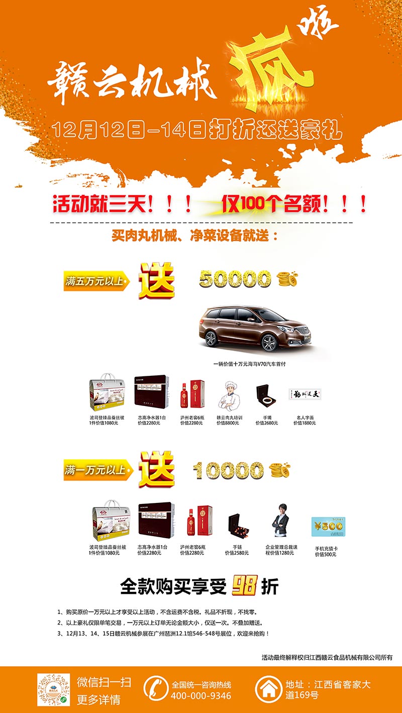 我們贛云機(jī)械攜手海馬汽車集團(tuán),研博教育集團(tuán),瀘州老窖,波司登等贊助單位鉅惠全國(guó)。史無(wú)前例的豪禮等你拿!