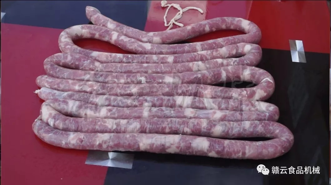 ③當(dāng)出現(xiàn)腸衣破損時(shí),要將其從破損處切掉扎口,將溢出的肉放入機(jī)器重新灌制;