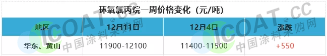 國內(nèi)環(huán)氧氯丙烷市場止跌反彈,12月11日,華東市場環(huán)氧氯丙烷價格在12000元/噸附近。聽聞寧波環(huán)洋兩條線共6萬噸/年甘油法環(huán)氧氯丙烷裝置負(fù)荷穩(wěn)定,廠家新單暫無明確報盤,廠家計劃15日開始停車,約25天。