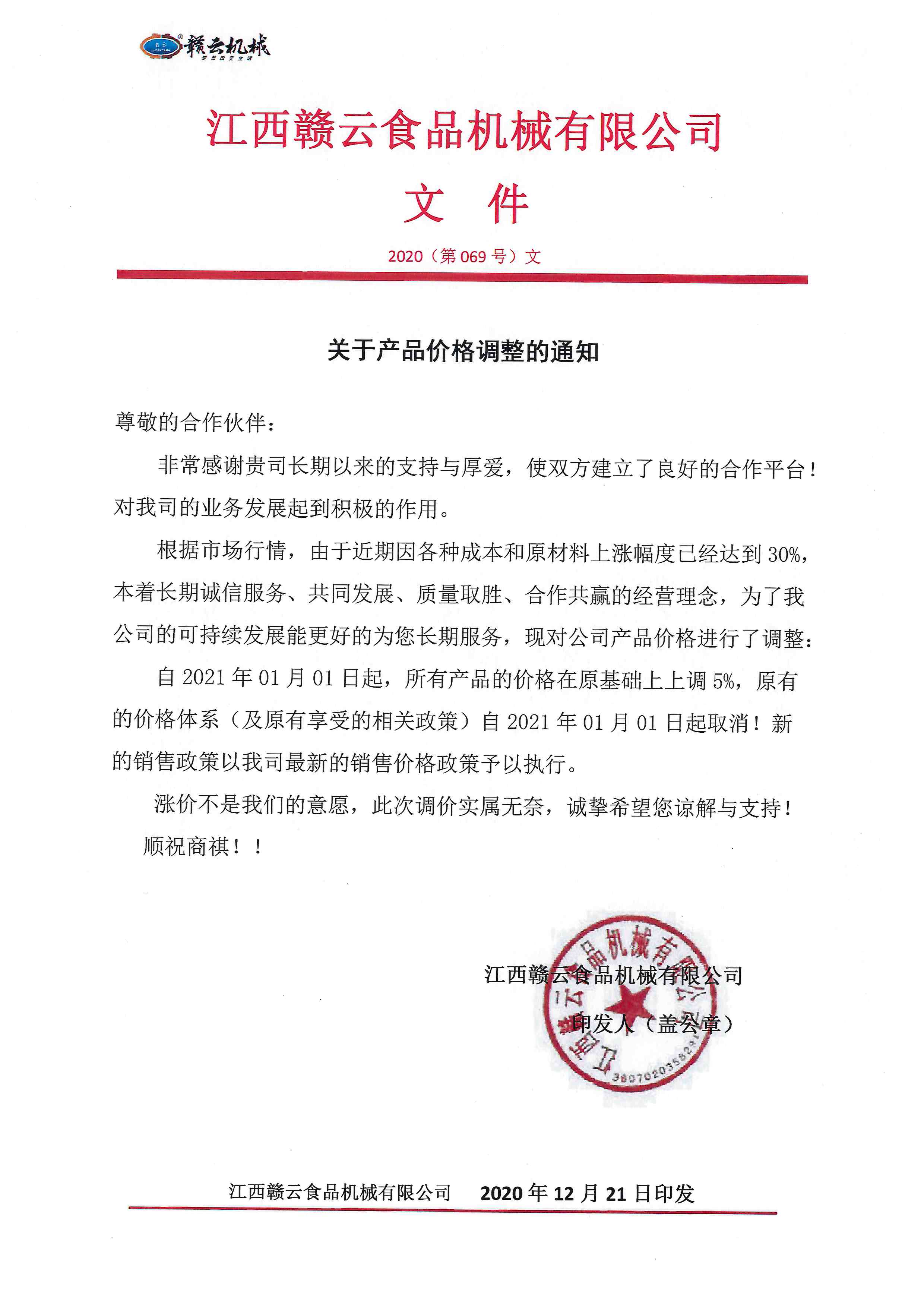 現(xiàn)對(duì)公司產(chǎn)品價(jià)格進(jìn)行了調(diào)整。